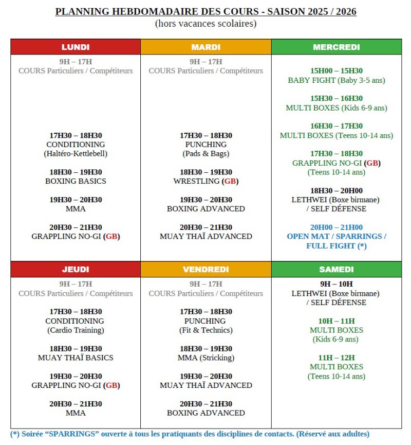 Vous trouverez ci-dessous le planning hebdomadaire des cours au OLD SCHOOL BOXING GYM d'Urrugne Pays basque.